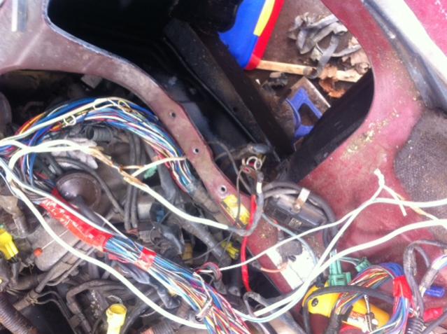 To put into perspective where this splice is, its hidden deep in the harness in the section that lies along the frame rail, behind the battery and up into the engine compartment.