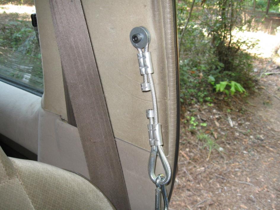 I had the head bonk happen when I went to check out a new purchase van. All I had was a cam strap used for tying stuff to your raft. looped it through the window behind the driver seat amd threaded the strap thru the hole on the lid. very solid. panels out of luck. I like the cable fix. I use a similar set up on my ski boots to prevent runaway skis.:redvan::yellowvan::greenvan: