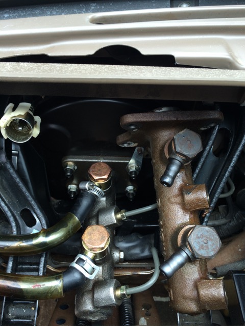 - keep the four nuts holding the master a little loose until you re-connect the brake lines (makes it easier to get them rethreaded)