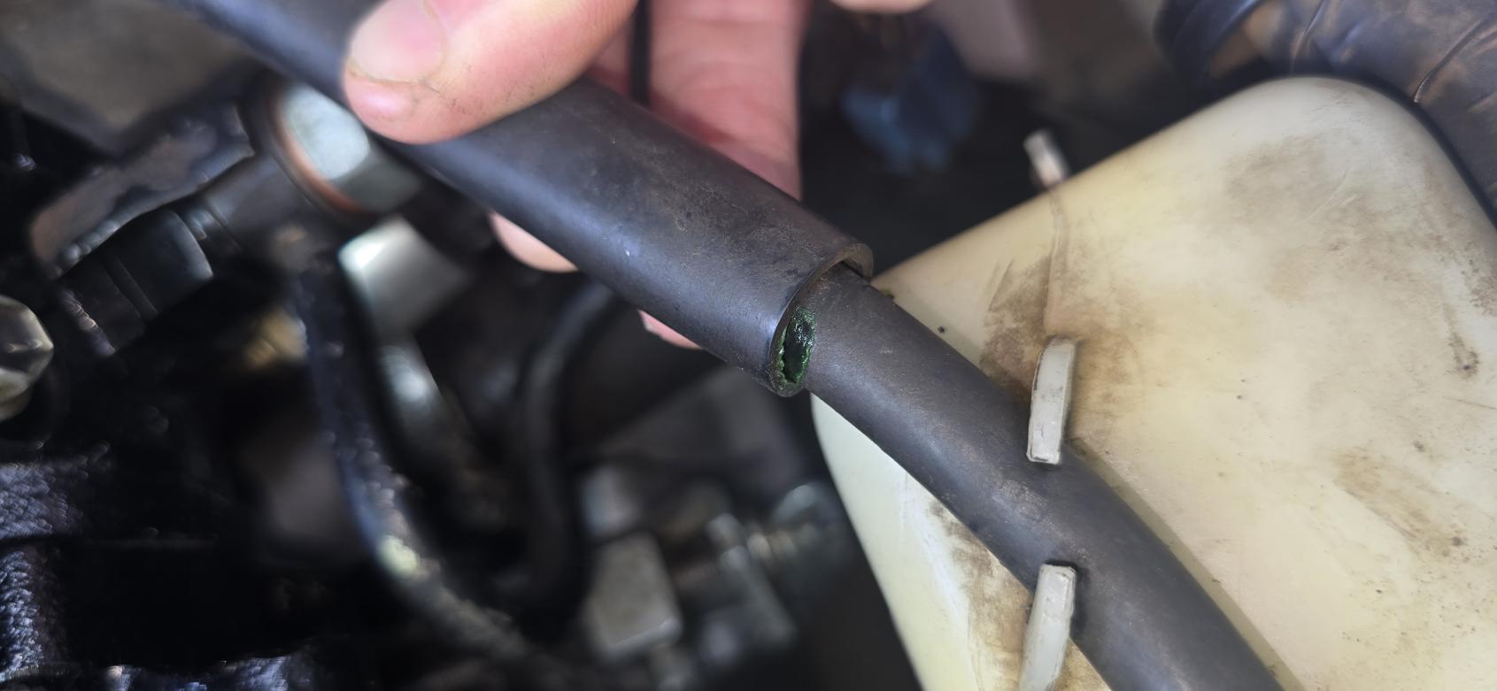 I have also noticed coolant leaking at the overflow hose from filler neck to coolant reservoir as per last photo. Also my coolant temperature gauge hasn't been working so I dont know what the temperature is sitting at I bought the car like that, but it has had a new radiator, viscous fan, and water pump replacement and thermostat replacement, and brand new upper and lower radiator hoses as per the invoices and I dont know if its overheating or not but I think the previous owner has been driving it like that for a while, also the overflow sensor float is broken so its currently disconnected also sealant has been used on the bottom of the overflow reservoir I suspect they had a leaky rubber gromet at one stage and have done a dodgy patch up job. I have not really noticed any coolant leaks on my driveway mainly just from overflow hose.