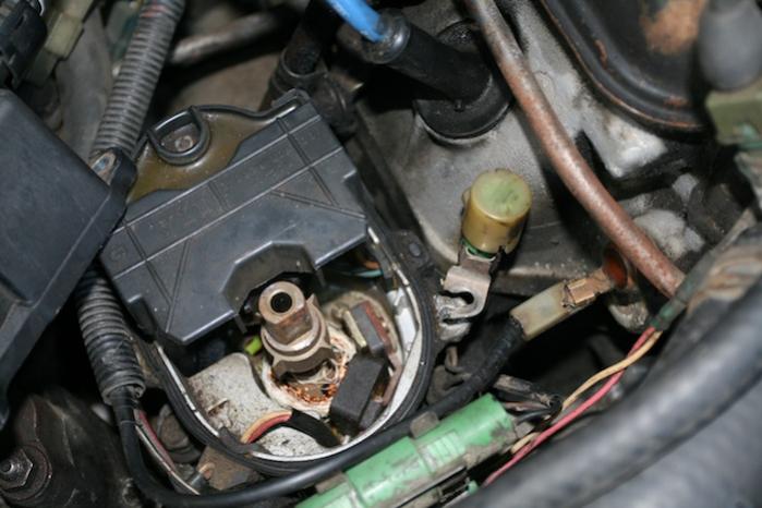 Hi All, I went out to start my van this morning. Cranked, but no start. Checked for and found no spark. Removed distributor cap and saw that the metal part of the rotor had broken off and was sitting at the bottom of the distributor cavity area. Also apparent is what looks like fishing line around the copper coil wiring (though I do not know enough to know if this is the "coil"). The fishing line stuff is sorta brittle, I pulled a bit of it out. Is this normal? I highly doubt it. I'm wondering if I can put a new rotor on and go, or what additional steps might need to be taken. I hesitate to throw a rotor on and drive off because I don't want to do any more damage. Here are a couple of pics. Can anybody shed light on this situation? :cnfsd: