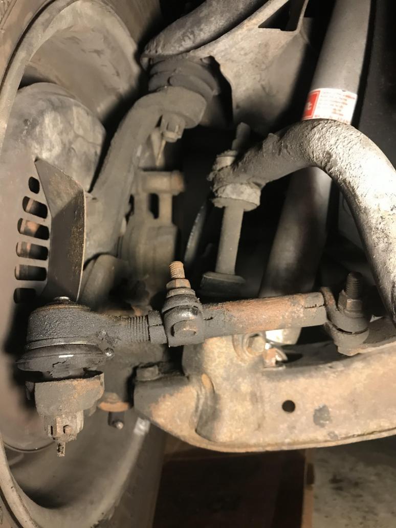I've had some pretty loud low pitch squeaks on my passenger side for some time. It's annoying. I replaced the tie rod ends and ball joints today... which was surprisingly easy... everything basically fell apart and it only took about an hour for both sides. The control arm bushing are certainly original and look bad but I'm not ready to tackle them just yet.