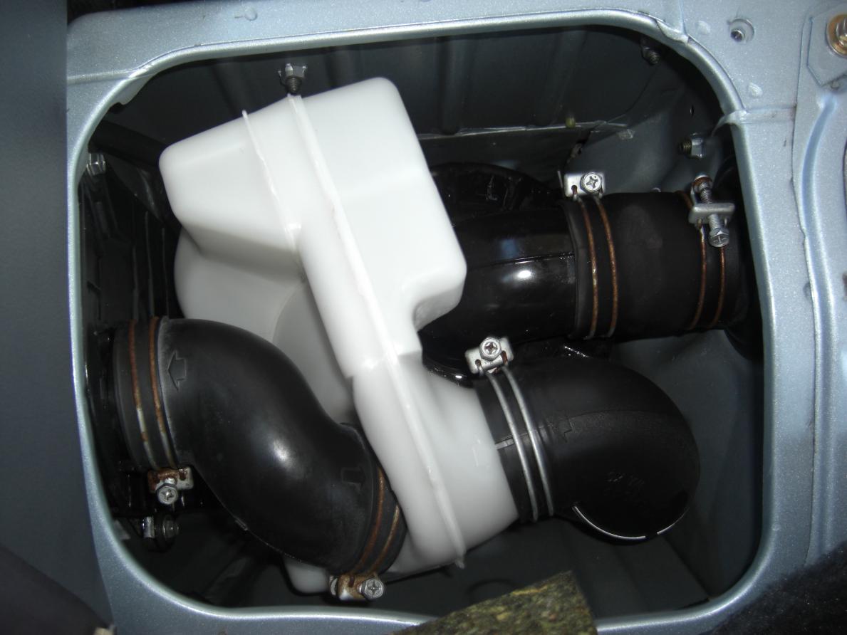 Can someone identify the white reservoir nestled around the air cleaner element housing. Here are a few pics from above and below.