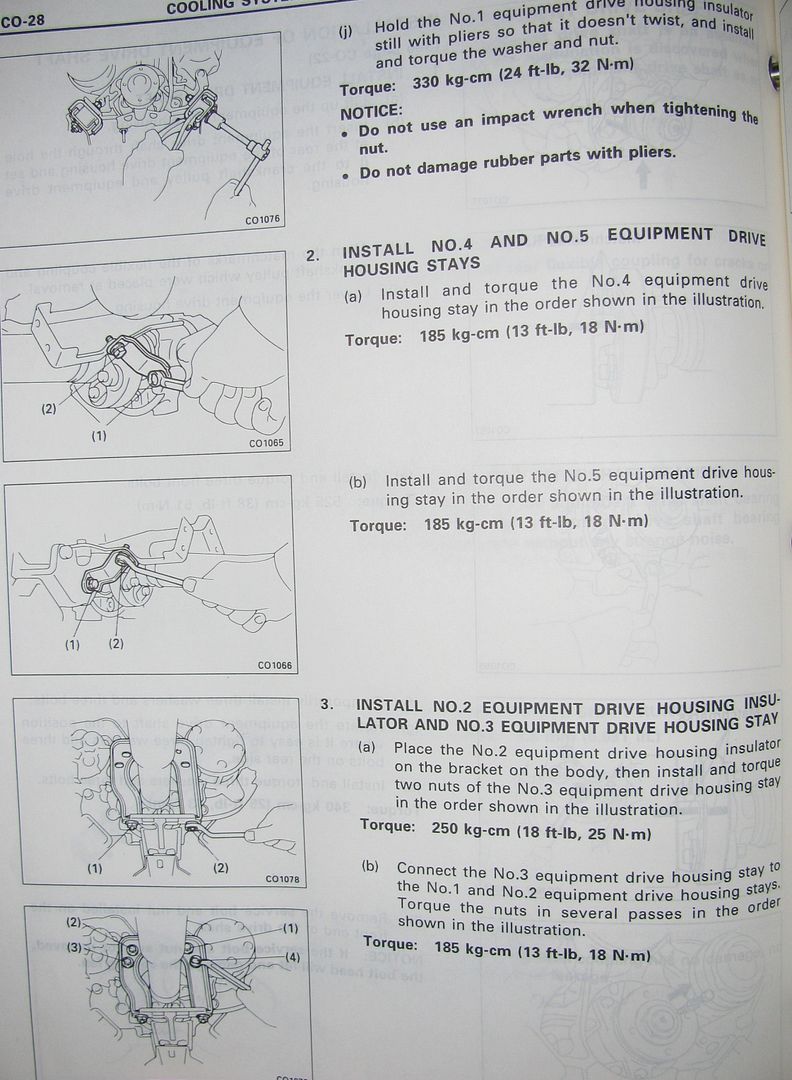 If you own and plan on keeping one of these it's a really good idea to get a Factory Service Manual. They are almost always available on eBay for around $75.00. Occasionally they come up for under $50 (just check there every so often). Don't mess around with Chilton or Haynes, get the Toyota one. In the mean time, here's some pictures I took from my 91 Previa service manual. This isn't the entire section, just the parts that talk about torque. Tim