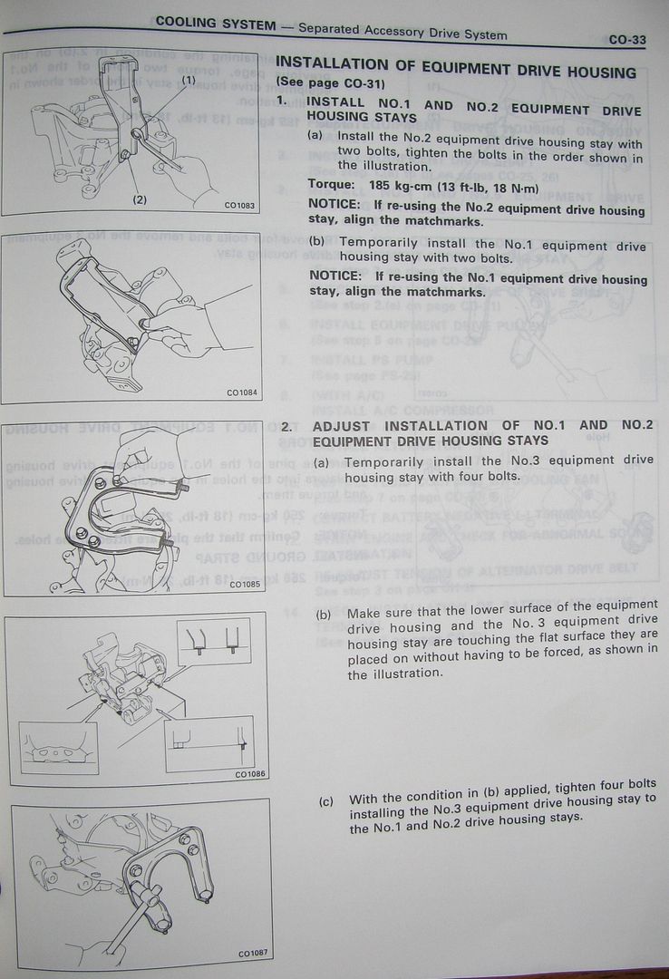 Pretty good write up, thanks. I notice on my 1995 Previa LE with S/C that I do not have the rectangular washers shown in your pictures DSCF3018a.jpg & DSCF3019a.jpg. It's just bolt heads. Does anyone know if this is a problem or if the design of the kit changed? The engine end did not have them, but I couldn't see the accessory end. Are they supposed to be at both ends? Maybe the previous owner accidentally left them off. I understand that he did this job himself.