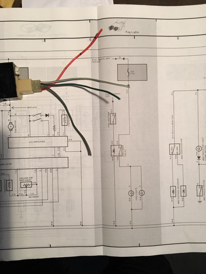 So trying to figure out wiring on adding fog lights and a switch. While I have wired a lot of the three wire accessory switches, the Toyota switch has four leads coming off it. Anyone know where the different wires go? My FSM (from an 87') seems to show only two wires coming from switch? Switch is from an 89'.