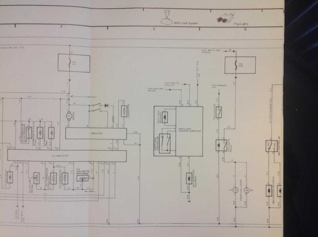 My fog light switch is from an 89' versus an 87'. I don't have access to a 88-89 FSM, but I would be willing to bet in that edition it would show four leads coming off the fog light switch, versus only two shown in my electrical diagram?