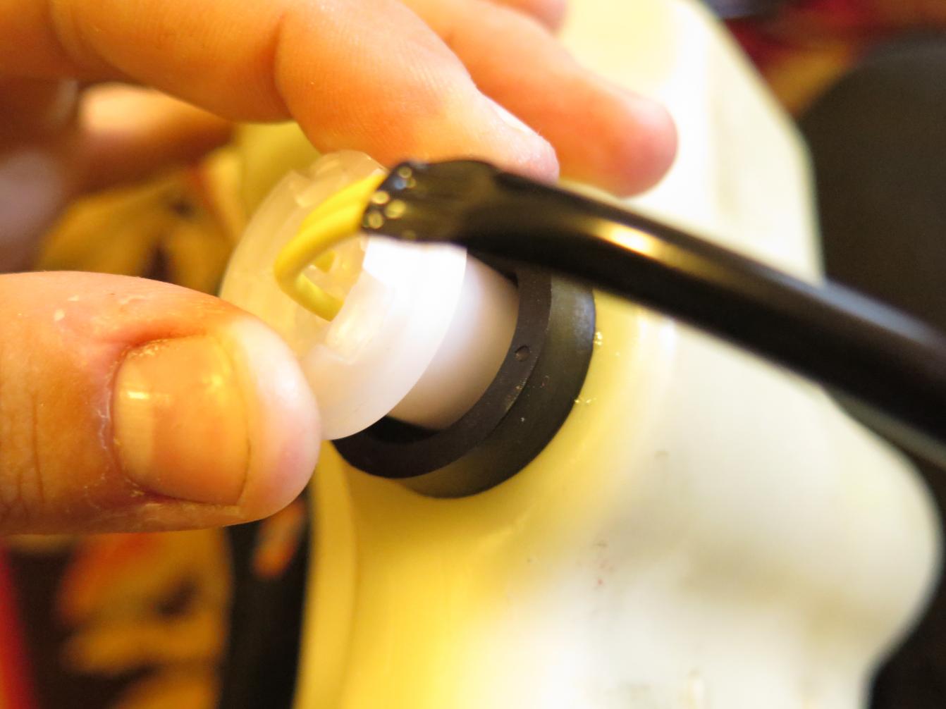 First the grommit goes very easily into the hold on the tank