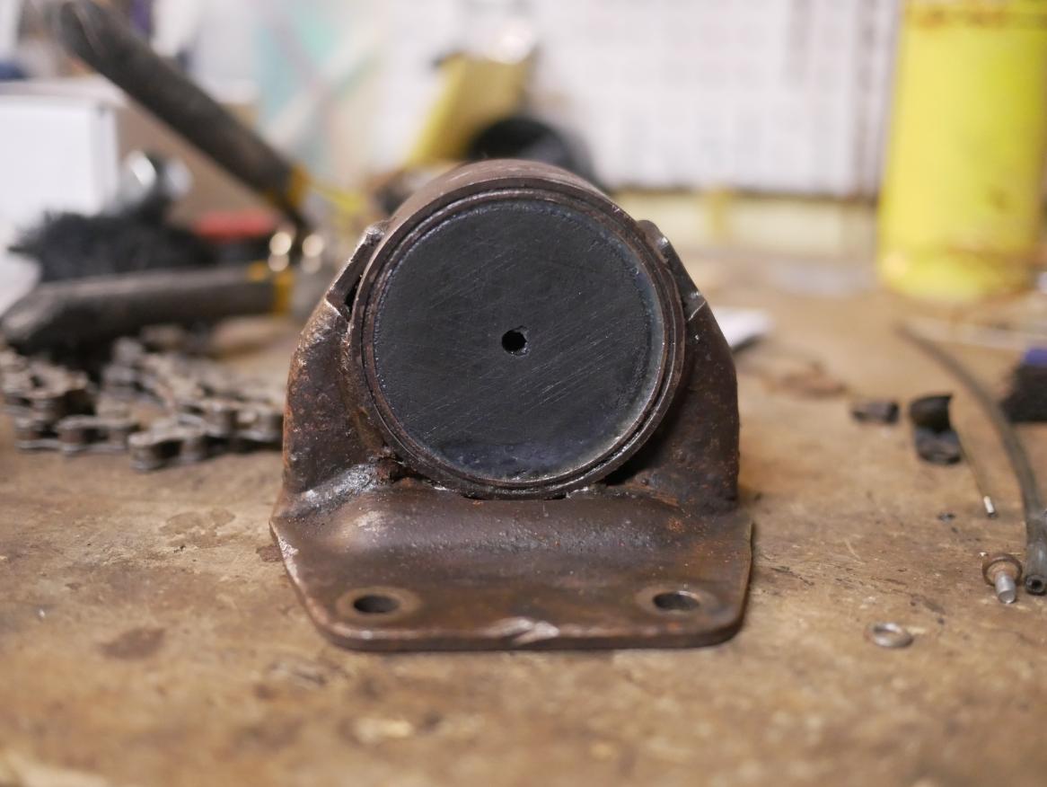 Yeah, I cut the round part off and welded the new round part on. When I made mine, I made sure the dimensions were right for the replacement so everything was aligned. I spent a long while opening motor mounts at AutoZone until I found the right one. I should have made note of the part number, but I didn't.
