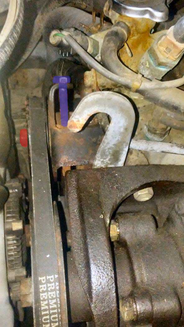 Also, it looks like you have the wing-nut-bolt on the alternator but its hidden from by a metal hose.