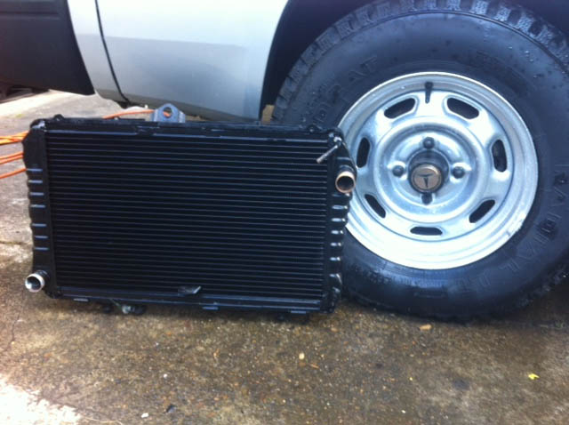 I got my radiator back from the shop. It turned out it was pretty bad so I ended up replacing the core. The new core + the maintenance ran me 245.00. Here is a shot of it posing next to my freshly painted wheels.