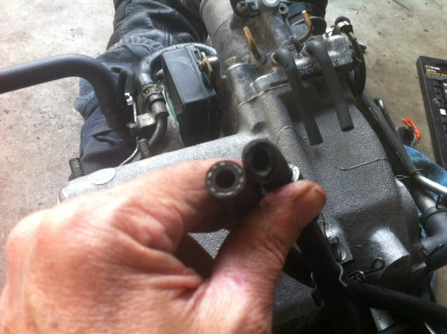 That's the hose! The one I found off. Maybe now my brakes work!?! I guess it was the spark plug wire that wasn't all the way on that was making it run rough.