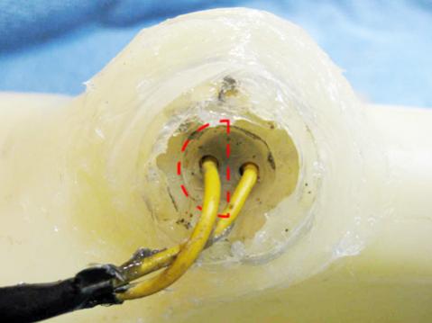 this isn't my photo of my sensor but here's about how much plastic i cut out to get to the wire: