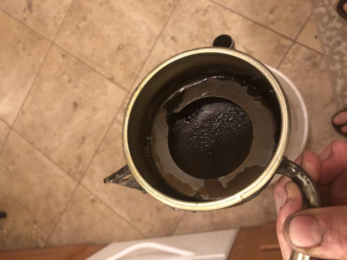 It was pretty caked. As satisfying as it was to scrape around down in there and pull up scoop after scoop of sludgy gunk, I did begin to wonder if this was just 28 years of residual build up or if something else had happened. I guess I have a weekend project ahead of me.