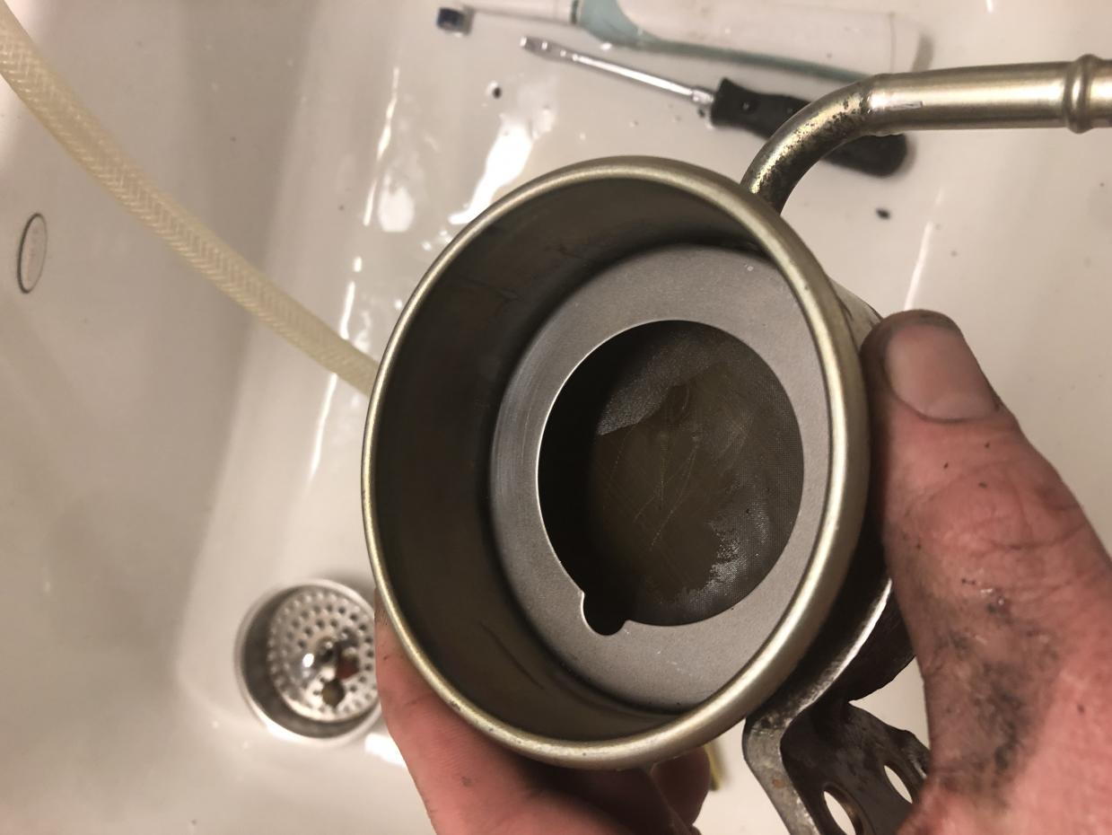 I'm about to finish this task of cleaning out the screen and I will post the results here when I'm done. I had one question in the meantime. Instead of using the rack that's brittle near the radiator to flush, can I just put the two hoses that connect to the reservoir in a bag and start the engine and drain that way? It's not a low point but it would help get more out than what's in there now.