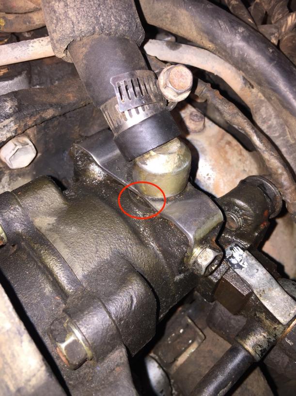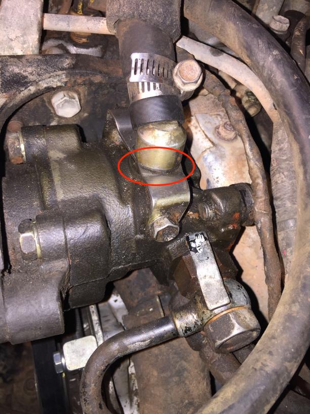 I have a leak coming from the bolt that leads to the pressure line (red arrow pointing to the leak in image). If I turn the steering wheel when stopped, I can see the PS fluid seep out of this joint. Do you know if I can fix this with the Edelmann kit? I read in another thread someone that fixed this problem but now I can't find it again :doh:. I'll keep looking.