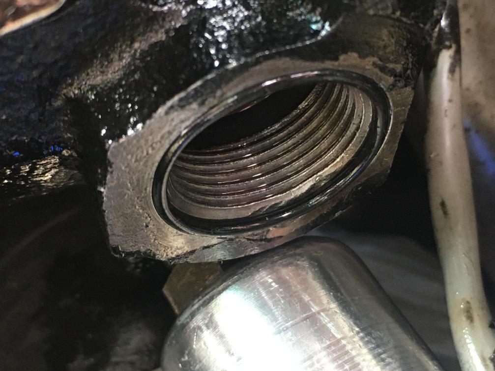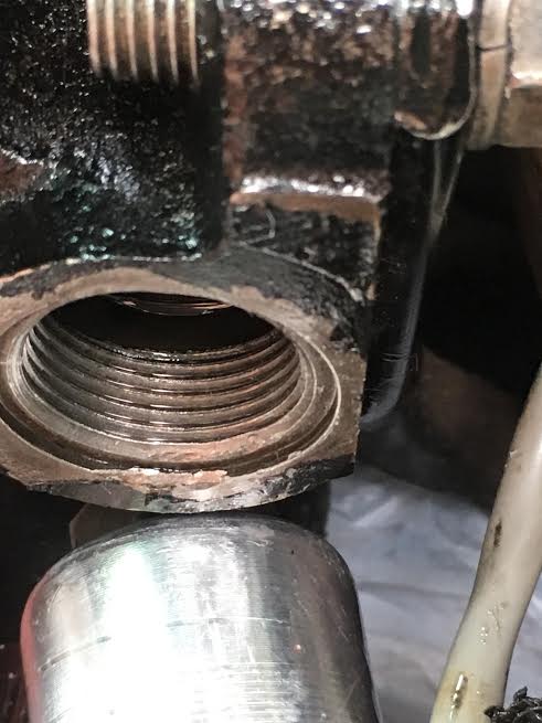Sorry to hear that. FYI o-rings need smooth and even sealing surfaces or they will leak. Scratches, dents, debris, or anything else on or in that seal surface will prevent the o-ring from seating properly. FYI, the o-ring should be put on the fitting, then the fitting should be threaded into the bore. It's always a good idea to have some grease on it too. Grease will help hold it in place and also help it slip into it's groove. You might be able to clean up that area and/or cheat with some Teflon tape, but if I saw a mark like that on my pump (on an o-ring surface), I'd start looking for another pump :doh: :bdmd: :swear:.