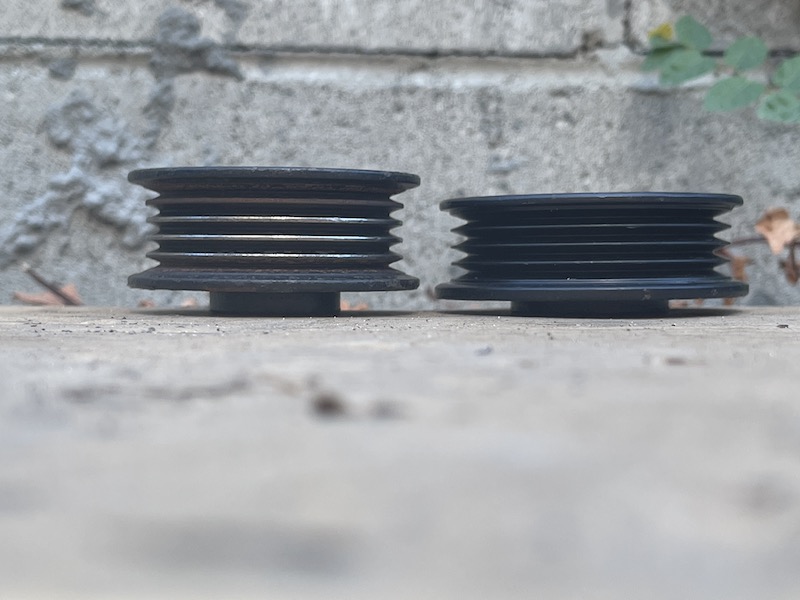I suppose a guy could swap the belt and just run a bit narrow on the fan, but I think I'll just swap the pulleys...