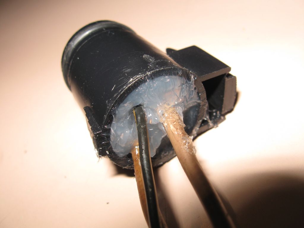 The connectors on the short leads each had a tang that clipped them into the shell, but the ones on the harness did not, so to keep them from backing out when the plug was inserted, I potted them in with RTV: