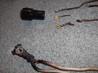 I'm stuck at what kind and size/gage wires to get??? I may save a little and use the same terminals, but only if I can open them up clean and it works out. The black clips seem to still be in good shape...