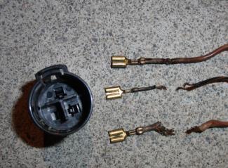The eBay connector came with short leads installed, but I pulled them out and slipped in the spade connectors already on the alternator harness wires: