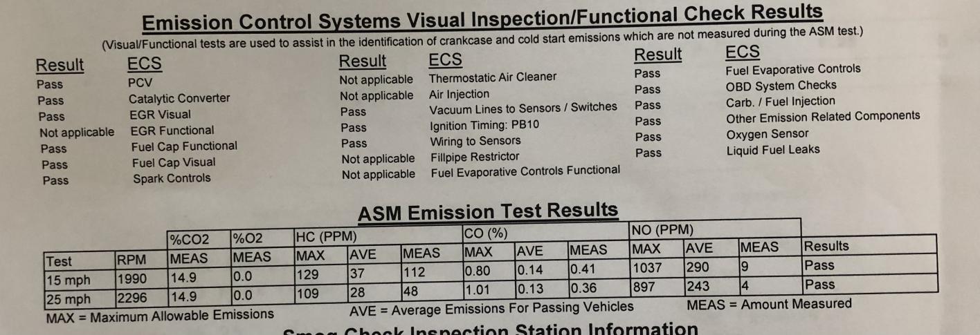 I eventually past CA Smog and thought it would nice to share the progression of emissions improvements as parts were repaired/replaced. While not all variables are held constant, I think it provides useful information those that are trying to diagnose emissions problems