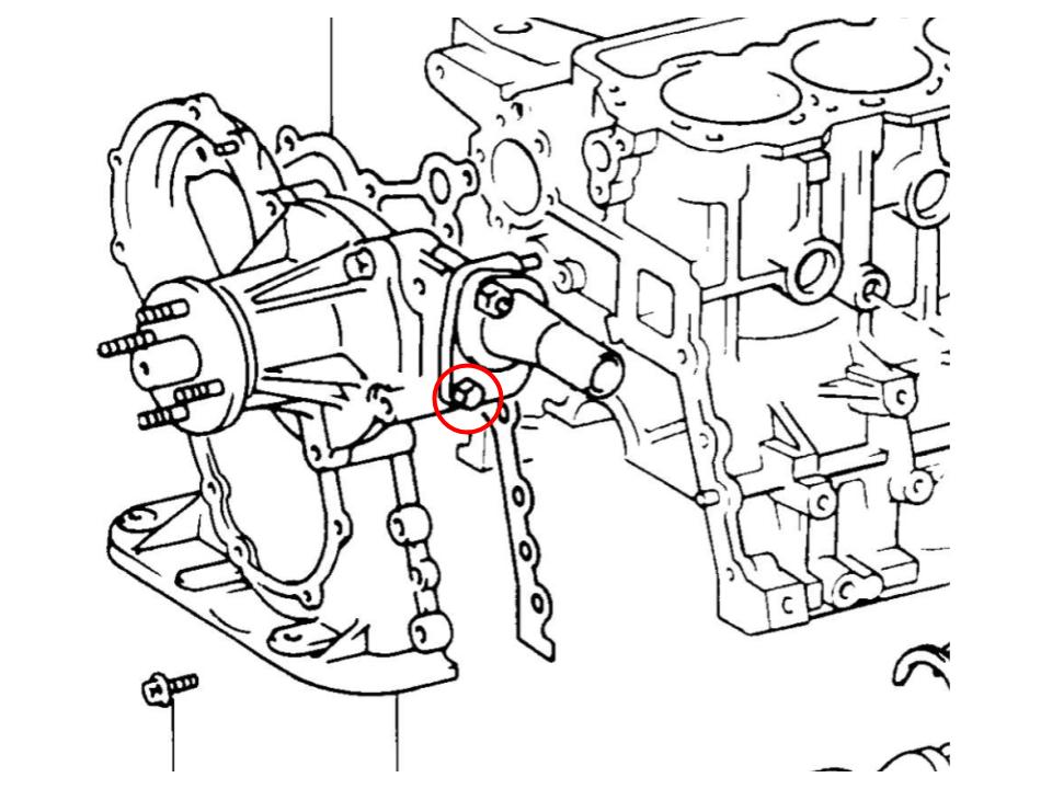 Can anyone tell me about the bolt circled in this image? I was changing out the thermostat in my 86 cargo van today, and I mistakenly removed it instead of one of the nuts for the thermostat housing. Luckily I had removed the alternator, so it didn't get doused in coolant.