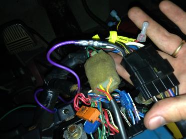 It may have been for an autostart system. The purple wire may be the start circuit, and the wires going to the A/C button are probably for turning the A/C on once the engine has been running for a few seconds.