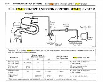 Where did he say fumes are leaking from, and to where? For example, from the fuel tank to atmosphere, or from the tank to canister? Something about what the tech said doesn't make sense for a 30 year old vehicle. These don't have complicated EVAP systems like new cars.