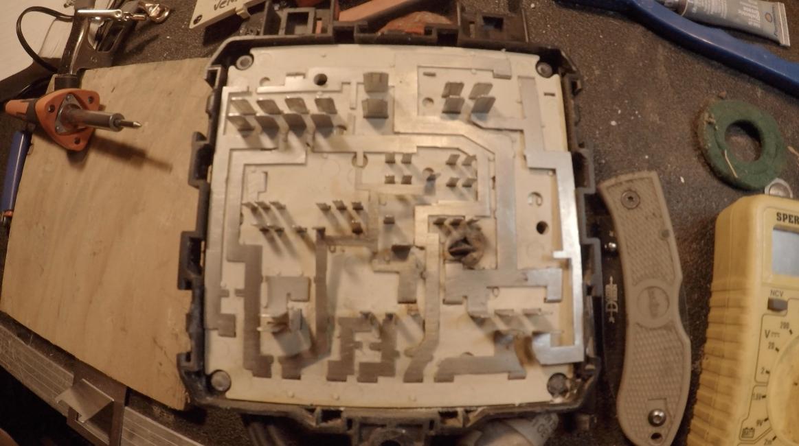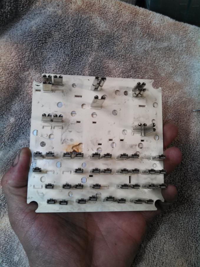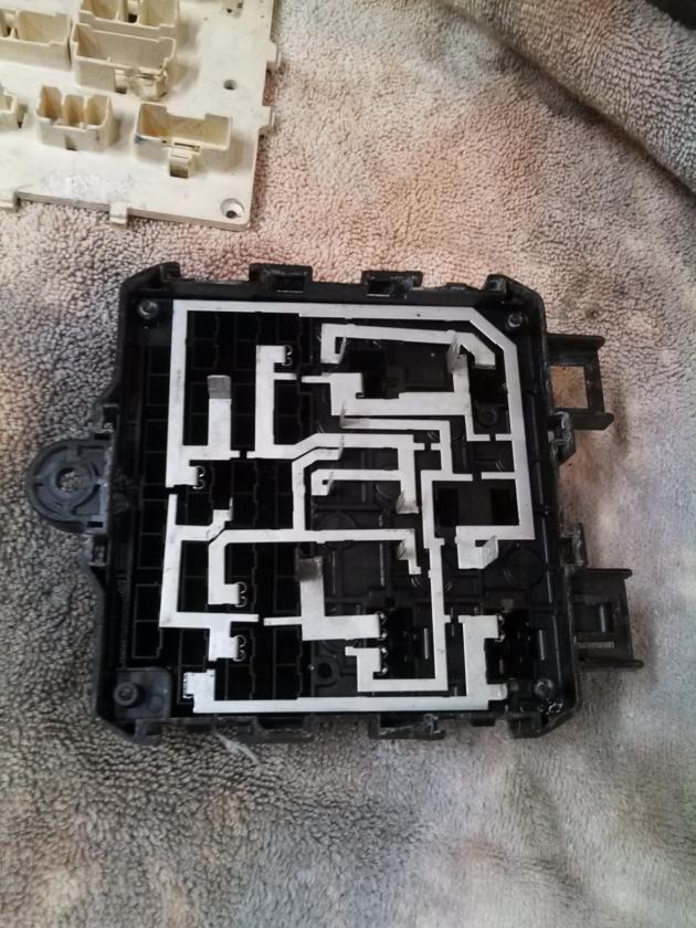 Once all the wiring harnesses were disconnected and I could get a good look at the rear of the fuse block, there doesn't appear to be any noticeable damage, as on the fuse block pictured above.