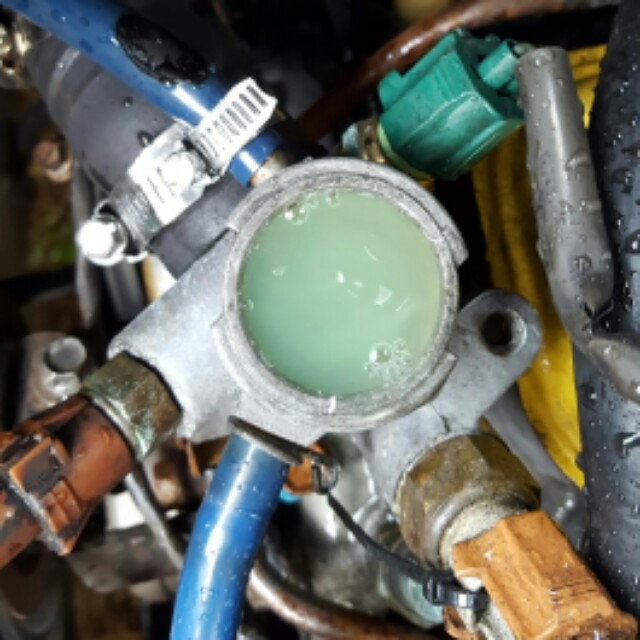 The coolant does look foggy...there are also little white deposits. What would that be though? I do have a new cap and flushed with vinegar awhile ago.tried to upload a picture but couldnt. If its the head gasket, doesnt it overheat because of lack of coolant (from an internal leak)? My coolant was nearly full. Topped it off and gonna test drive.Attachment 3848