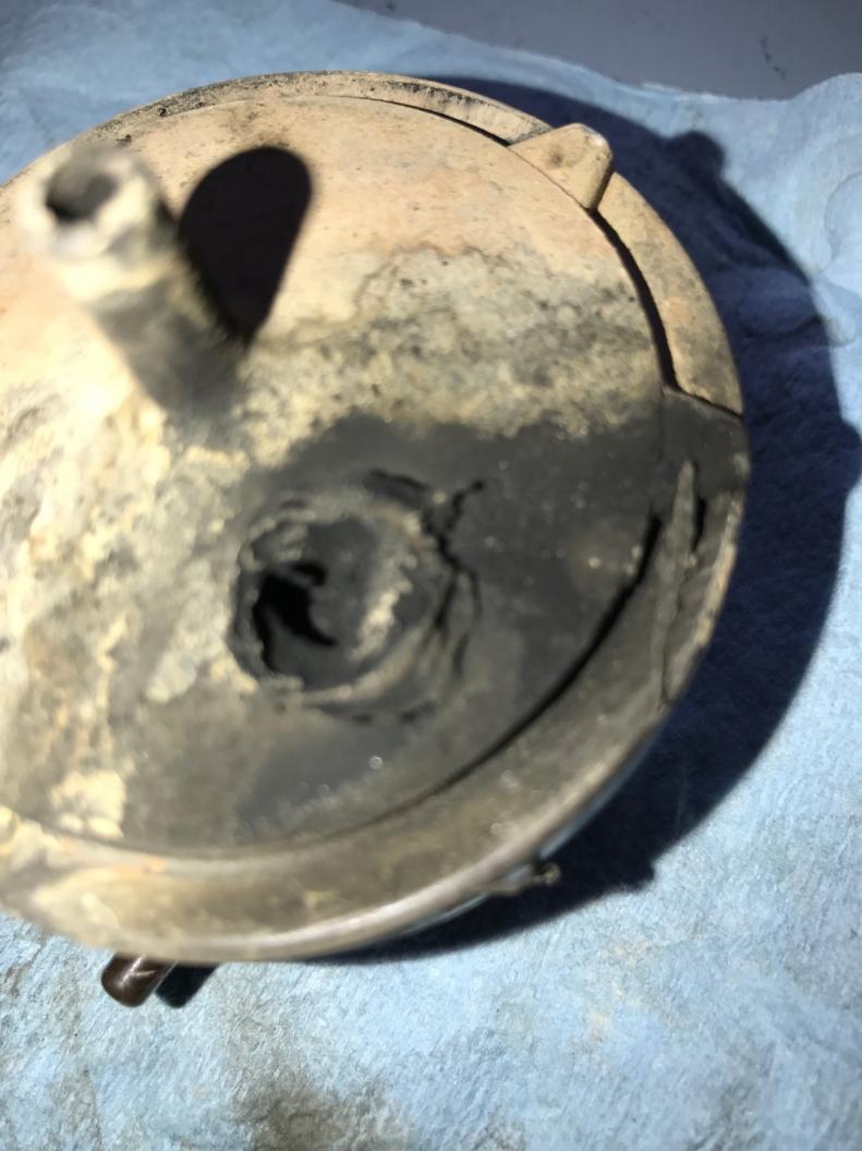 looks like somehow this got disconnected (assume by PO when he did some work on it) and it melted a hole