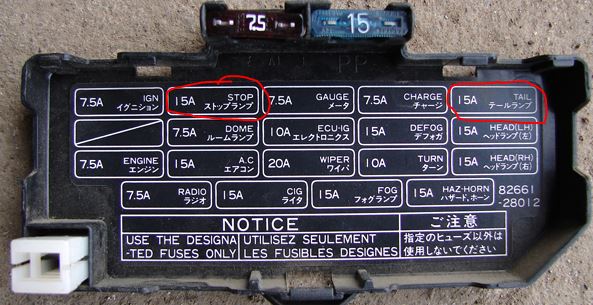Lastly, I checked all the fuses when I realized my brake lights weren't working and alas the fuse indicated as "stop" was blown. So I bought a new one on the way home from work two days ago and then yesterday during lunch I checked on the new one to find it was blown already! This is my problem, I need to find the cause of this short.